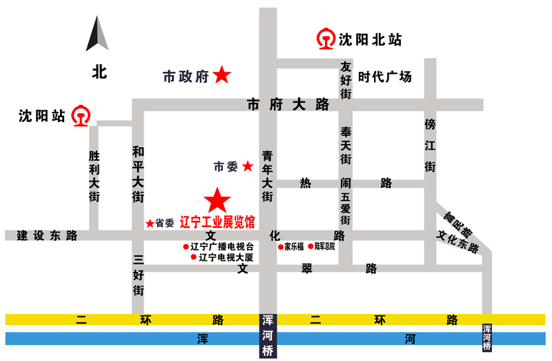沈 陽(yáng) 站:乘環(huán)路、225路 在工業(yè)展覽館站下